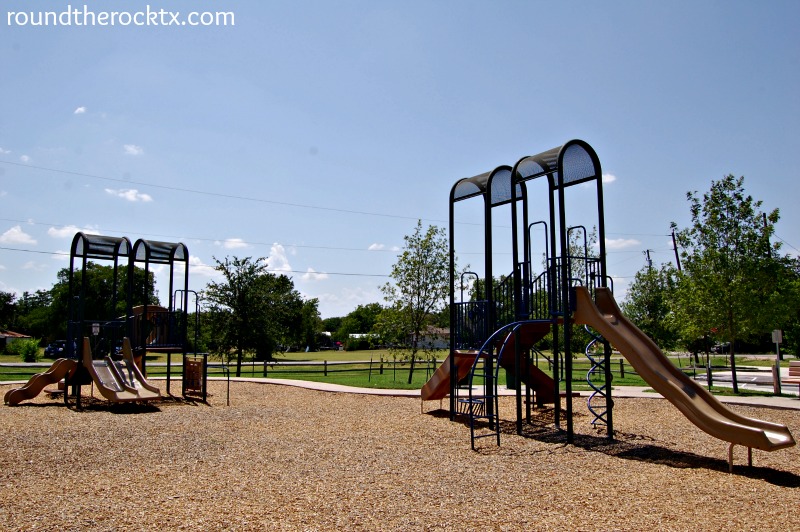 This small neighborhood park is located on South Mays, just south of downtown Round Rock. I have driven by this park a gazillion times but never stopped to play – and they have a great playscape!