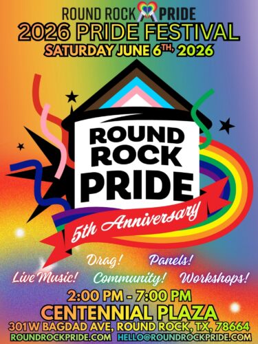 Jun 6 2:00 pm - 7:00 pm 2026 Round Rock Pride Festival Centennial Plaza 301 W. Baghdad St., Round Rock Event Details Get Directions