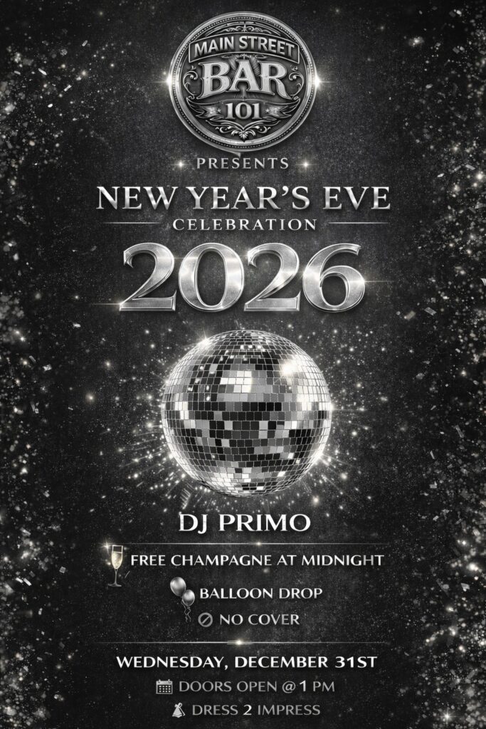 NEW YEAR’S EVE 2026 – Join us at Main Street Bar 101 to ring in the New Year right. Come celebrate with us and toast to 2026!