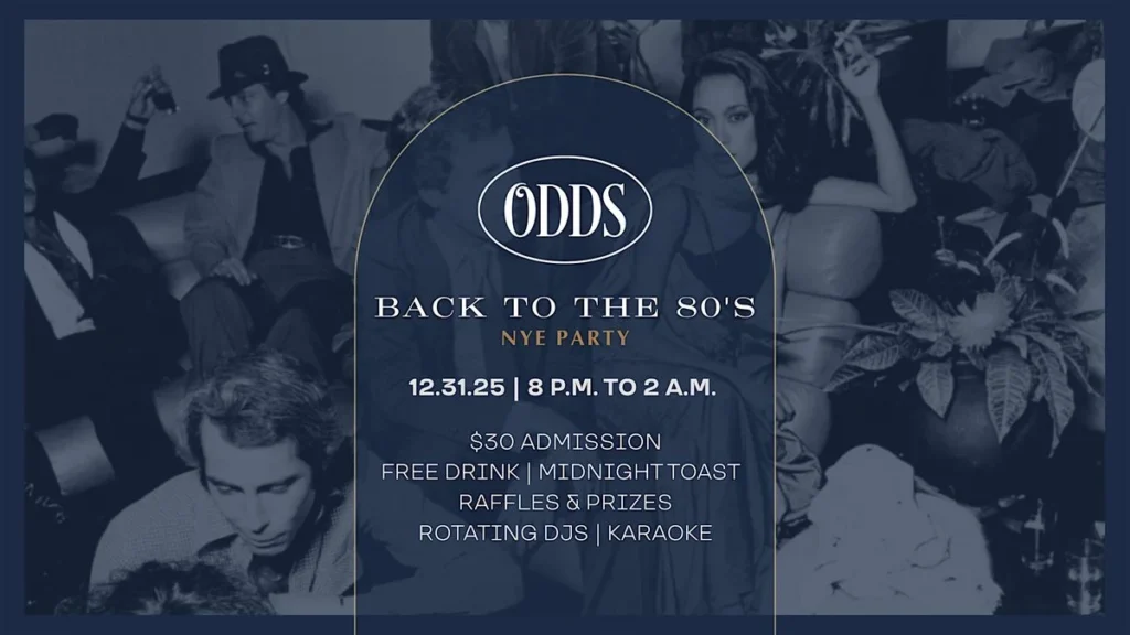 Celebrate New Year’s Eve in style with an elegant evening inspired by the 1980s. Ring in 2026 with a sophisticated night of music, dancing & celebration with Odds Bar + Bistro.