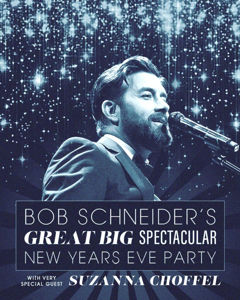 Party with Bob Schneider and Suzanna Choffel in the glittering gold Paramount Theatre to ring in the new year! This show and party combo is the best way to see 2025 out in style while ensuring your first moments of 2026 are unforgettable.
