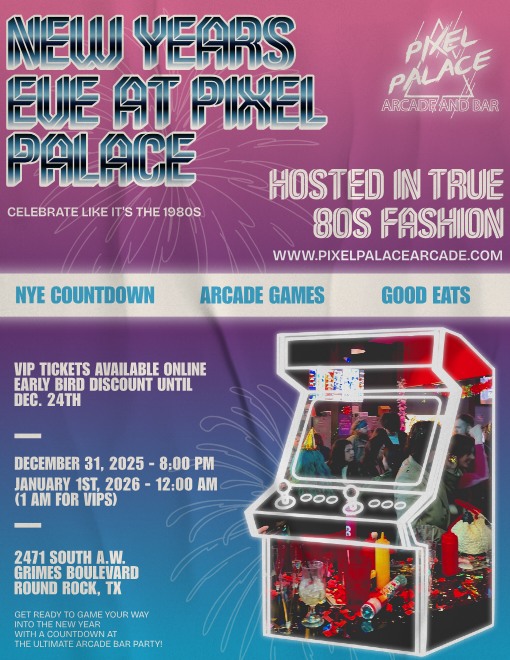 Ready to start 2026 off with a bang? We’ll be waiting at Pixel Palace Arcade & Bar!