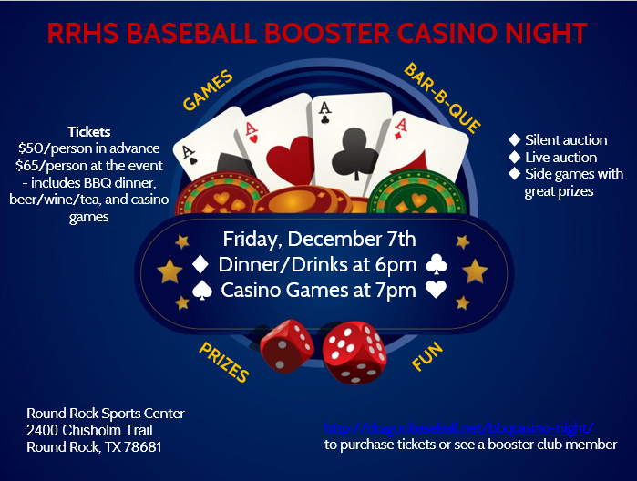 Round Rock High School Booster Club is hosting a Casino Night on Friday, December 7, 2018. This fun evening benefits the Round Rock High School Baseball team.